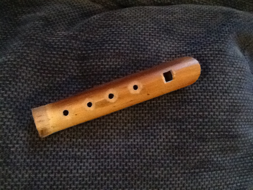 Melodia eseguita con il flautino di canna (arundo donax) a quattro fori più portavoce costruito da Vittorio che utilizza la canna o parti di ossa di pecora o capra.